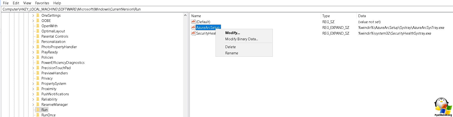 Это одна из веток, которая управляет автозапуском в Windows Server, тут есть ключ AzureArcSetup, запускающий %windir%\AzureArcSetup\Systray\AzureArcSysTray.exe.