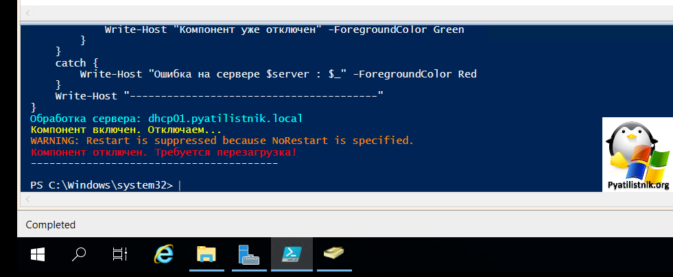 Write-Host "Компонент успешно отключен" -ForegroundColor Green