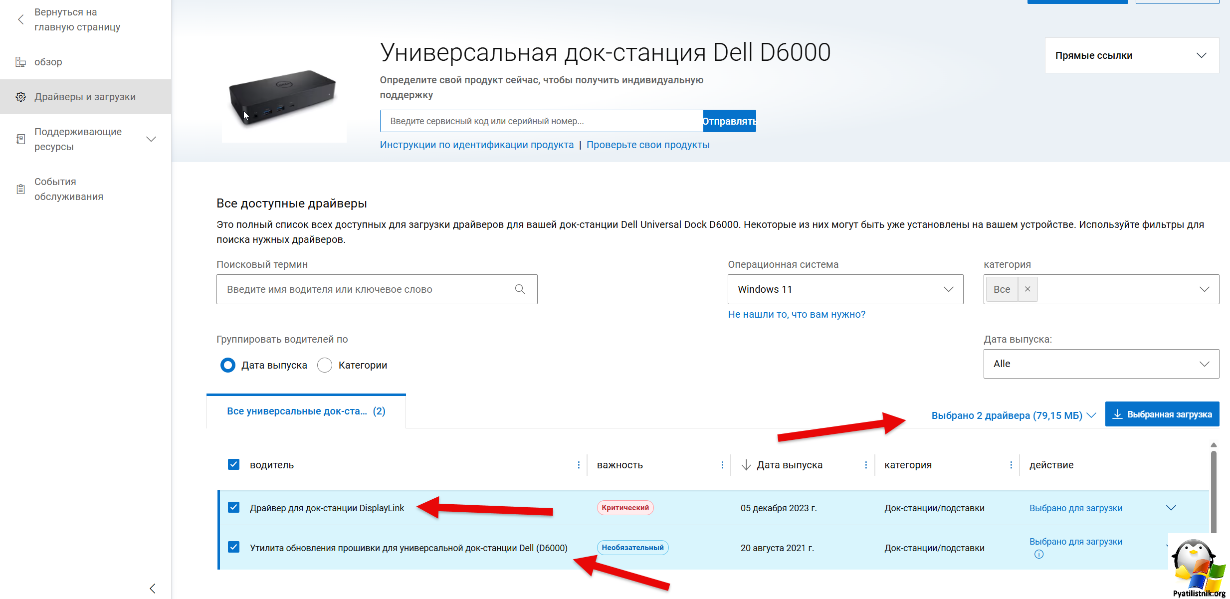 Перейдите по адресу - https://www.dell.com/support/product-details/de-de/product/dell-universal-dock-d6000/drivers