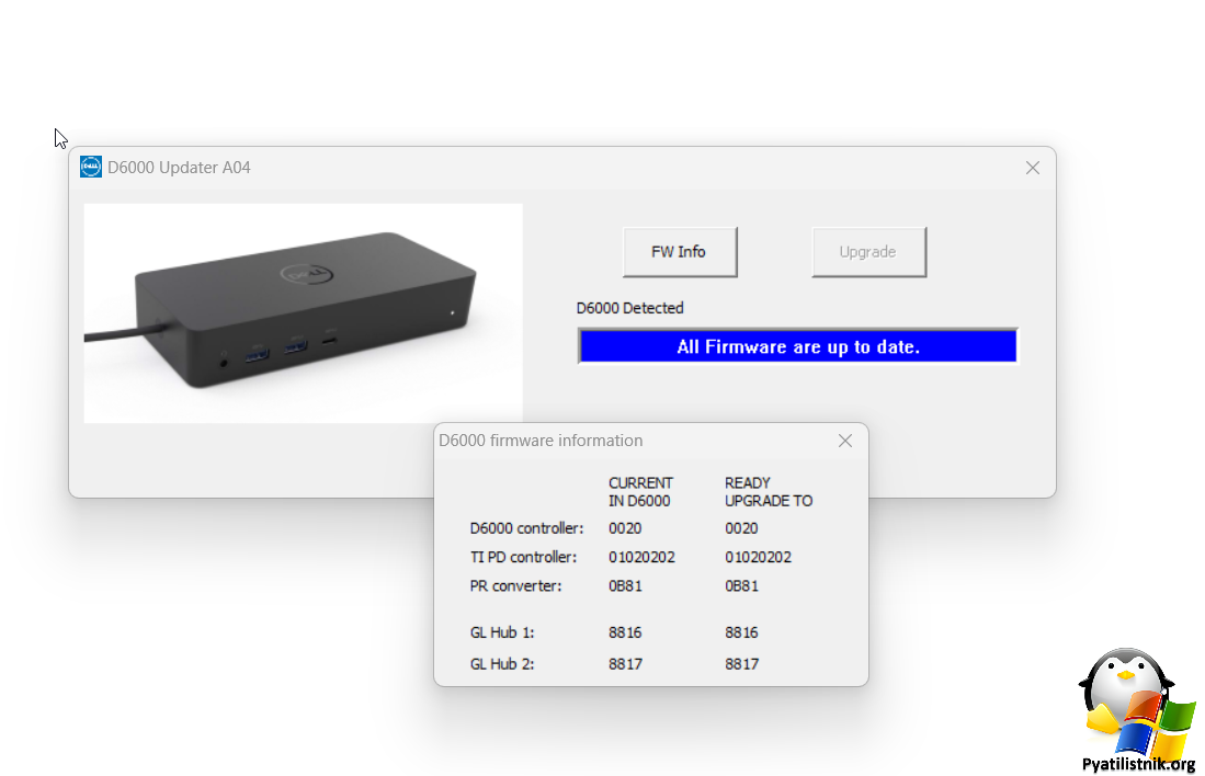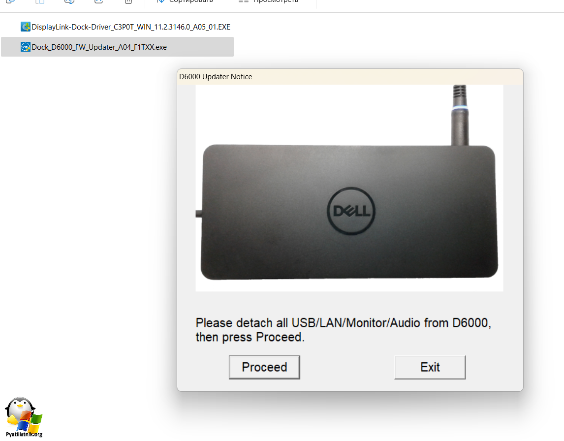 Для установки последней прошивки вам необходимо запустить Dock_D6000_FW_Updater_A04_F1TXX.exe. Утилита проанализирует подключенную док станцию, если все хорошо, то она попросит нажать кнопку "Procced".