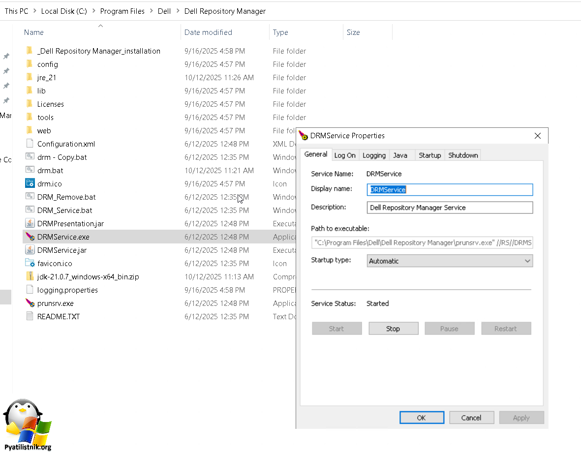 Копируем его на сервер и кладем в каталог "C:\Program Files\Dell\Dell Repository Manager". Обратите внимание, что у вас там будет старый пакет, у меня папка с ним называется jre_21. Теперь нам необходимо остановить службу DRM. Для этого запустите файл DRMService.exe.