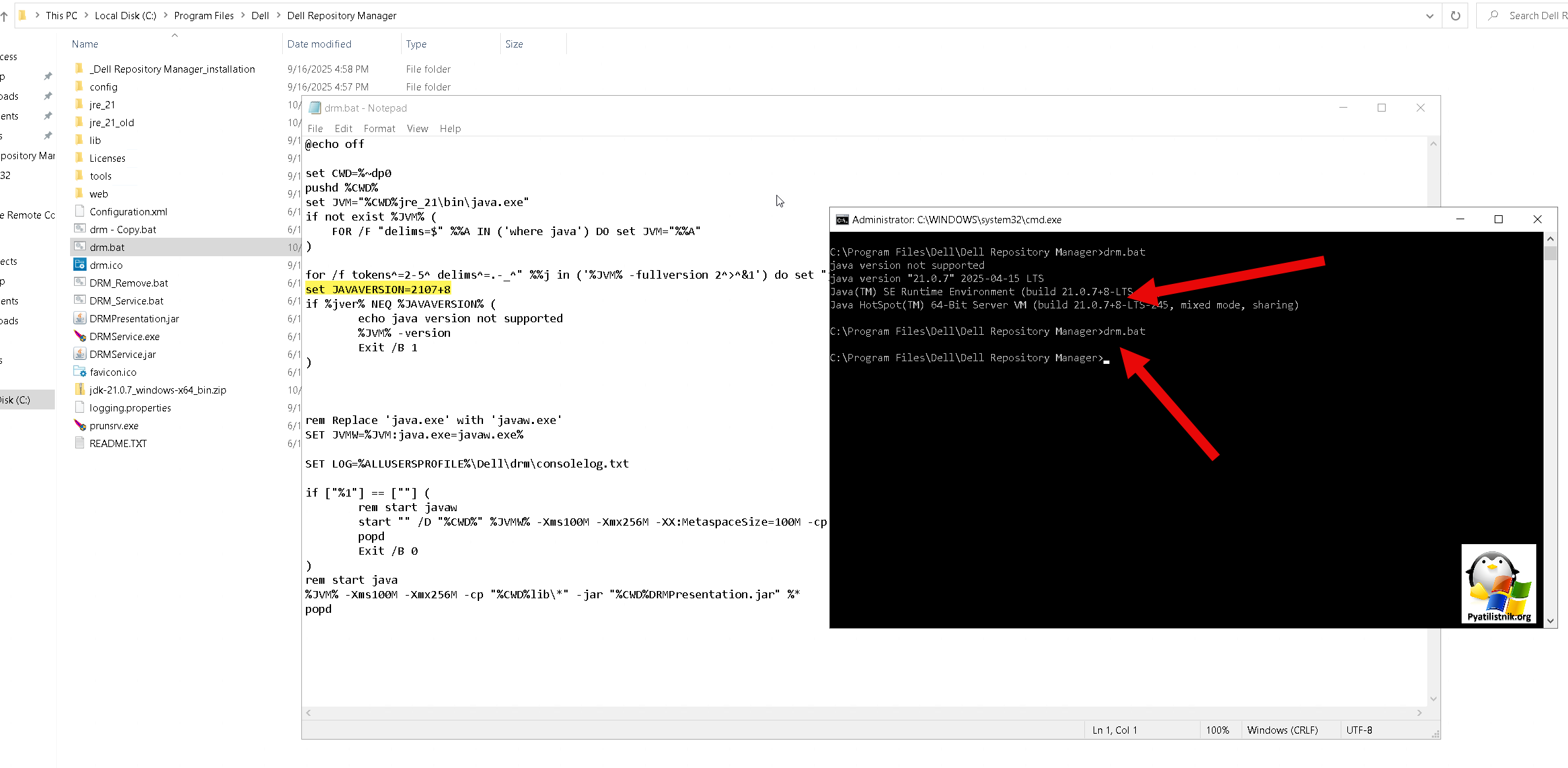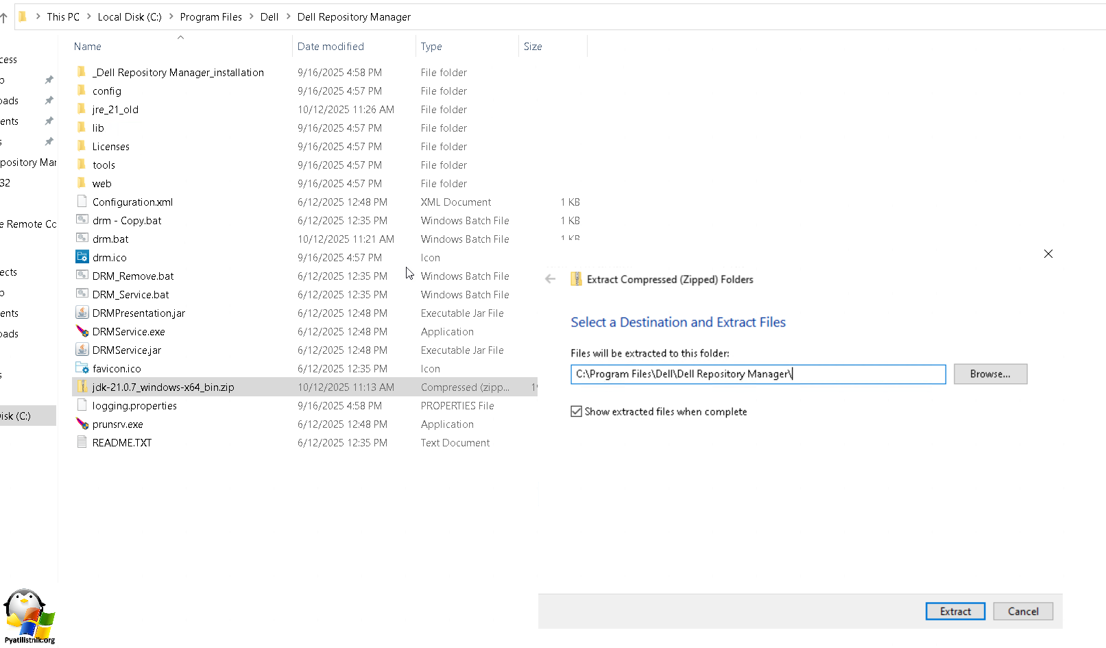 - ✅ Установить Java 21 в расположение Dell Repository Manager