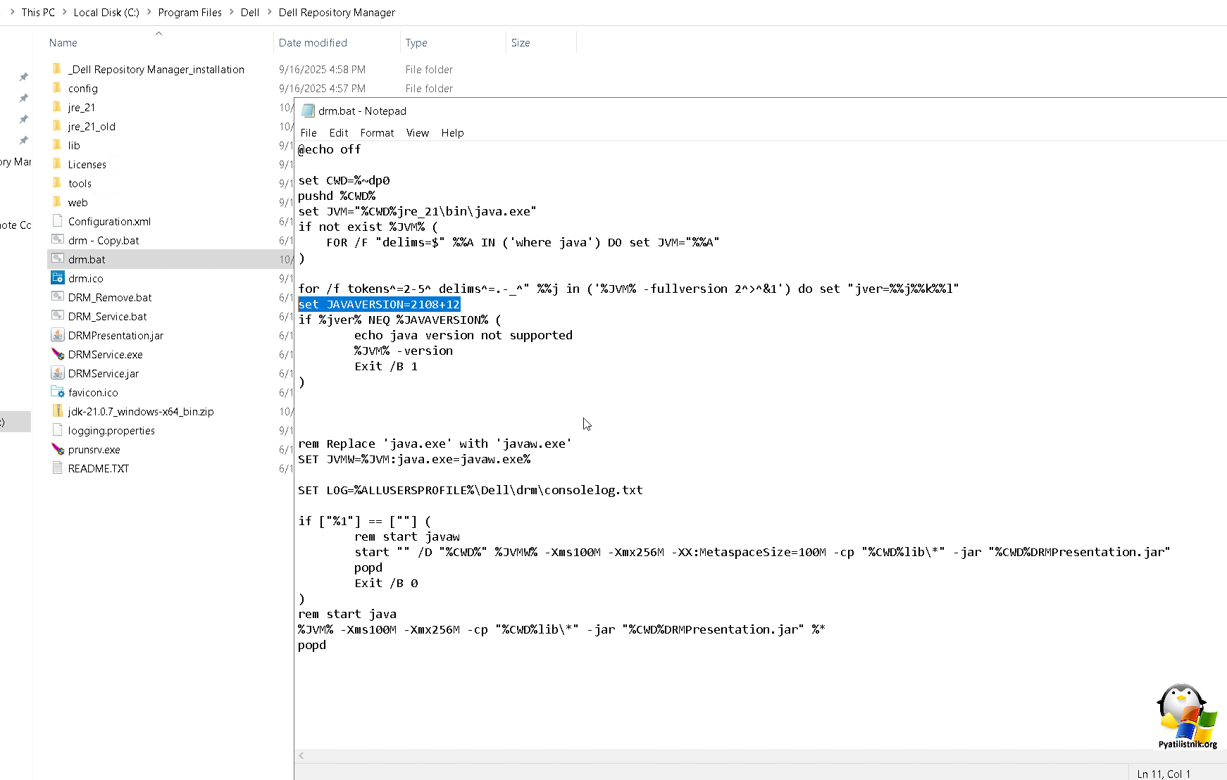 Чтобы это поправить, сделайте резервную копию файла drm.bat, после чего откройте его текстовым редактором. Найдите там строку set JAVAVERSION=2108+12. Тут нужно заменить на новую.