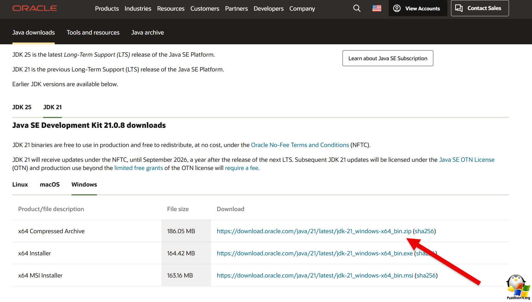 Найти свежую версию Java 21 вы можете как на сайте разработчика, так и на сайте Microsoft: