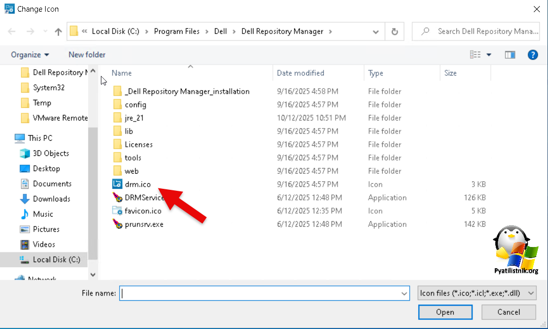 Переходим в папку с утилитой и находим там файл drm.ico, устанавливаем его в качестве иконки.