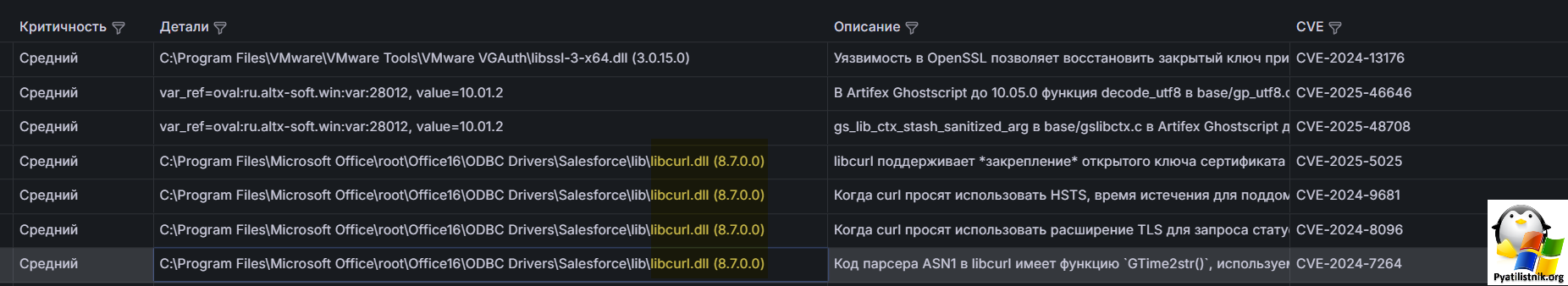 Обратите внимание, что например CVE-2024-7264 от 2024 года имеет исправленную версию 8.9.1, и барабанная дробь в октябре 2025 года, в состав сентябрьской версии Microsoft Office 2021 входит libcurl.dll (8.7.0.0), как вам такое. Хотя в большинстве случае уровень уязвимости средний, это не повод его игнорировать, когда есть возможность закрыть.