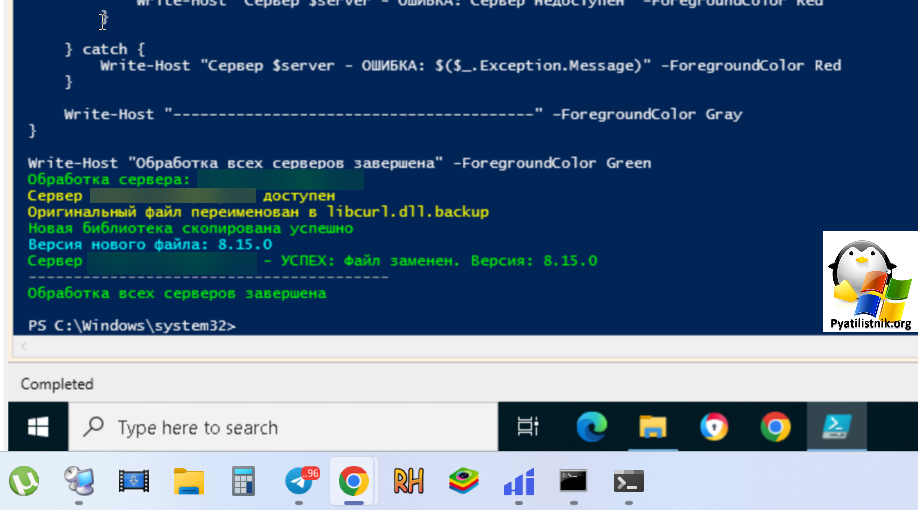 Write-Host "Файл libcurl.dll не найден на сервере $env:COMPUTERNAME."