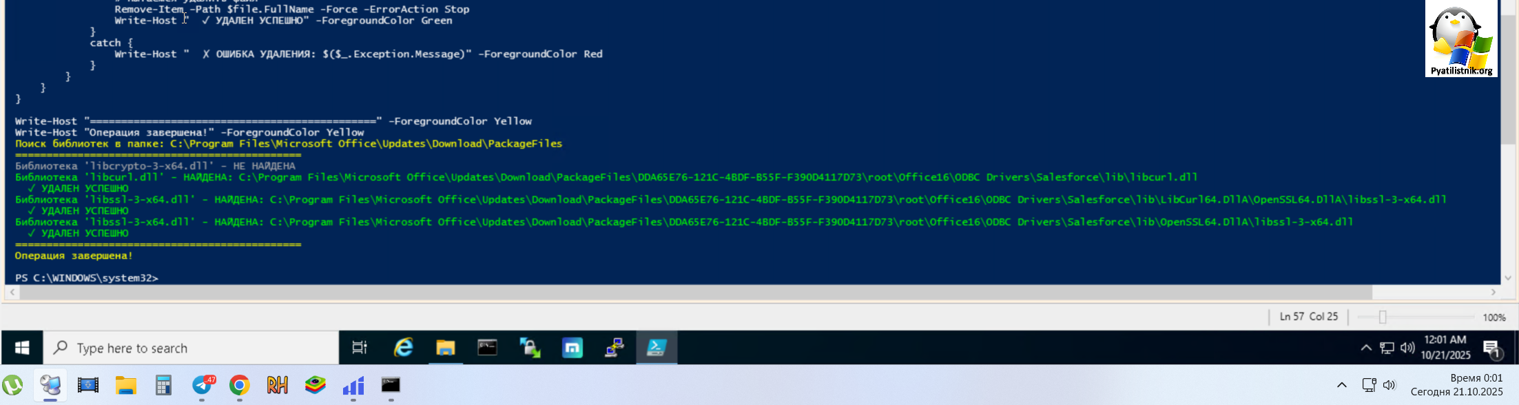 $searchPath = "C:\Program Files\Microsoft Office\Updates\Download\PackageFiles"# Библиотеки для удаления